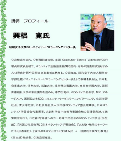 - 公開講座「ボランティアの世界」のお知らせをアップしました