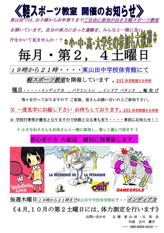 「軽スポーツ教室開催のお知らせ」をアップしました